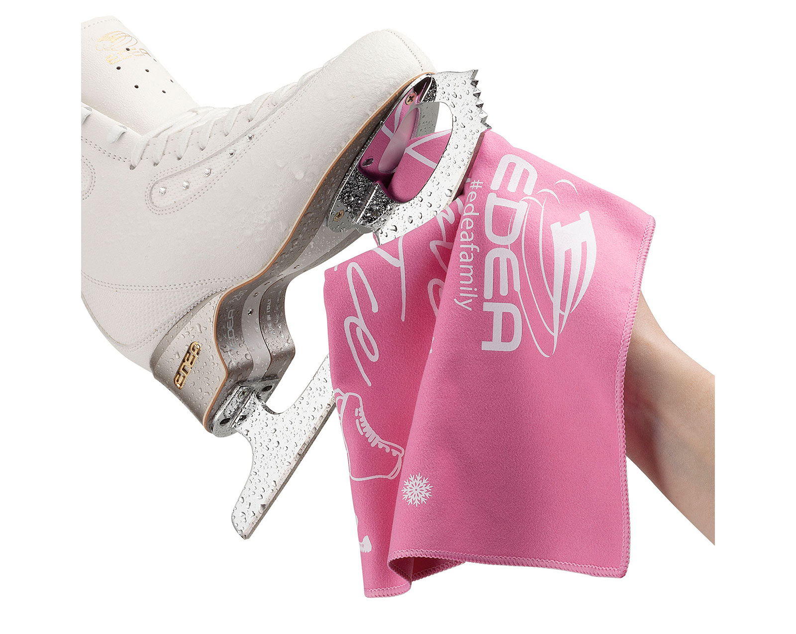 Mantener las palas secas cuando no están en el hielo es esencial. El primer paso es limpiarlos. Una microfibra extra absorbente especial te ayuda a limpiar la cuchilla sin rayar la superficie.
