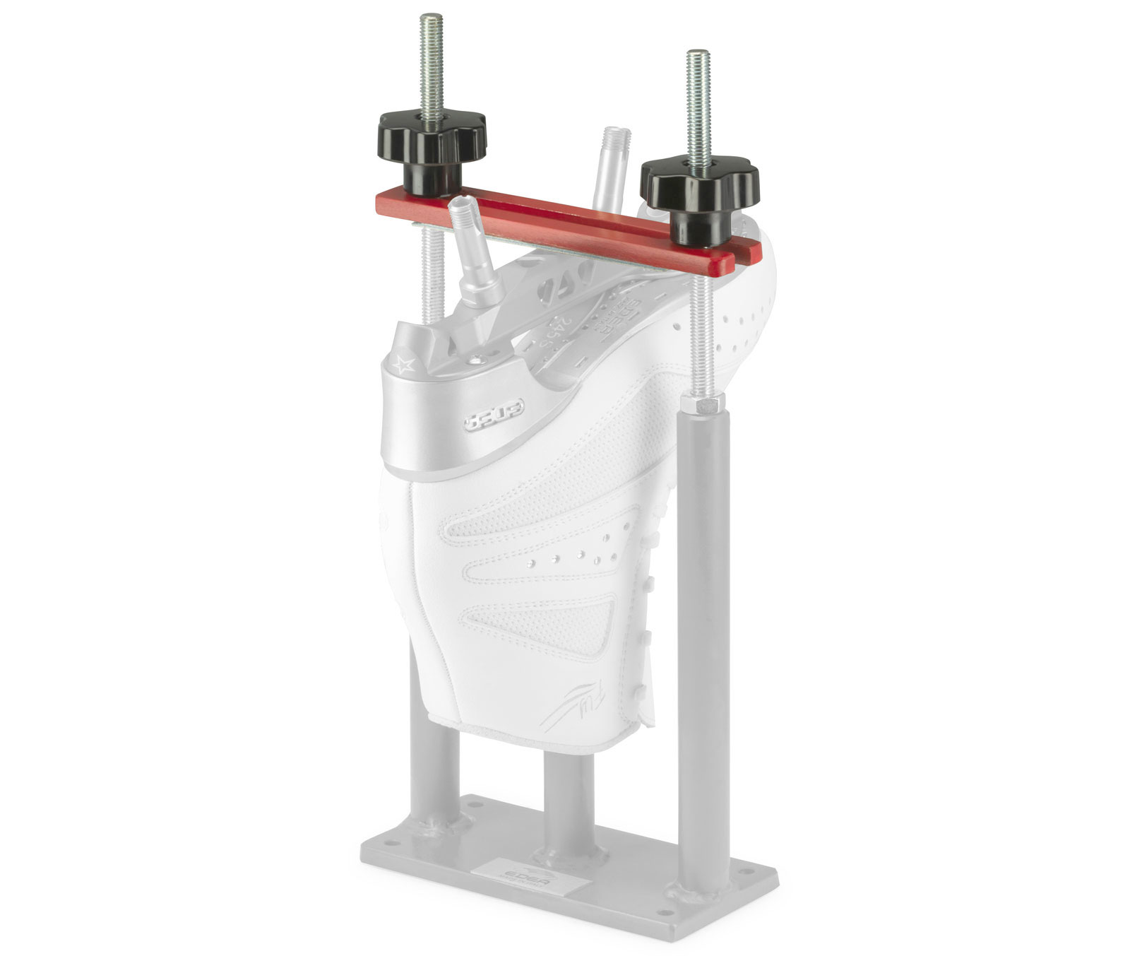 - Base de apoyo que sujeta el zapato en su sitio, dejando las manos libres y permitiendo taladrar y montar con precisión la placa.