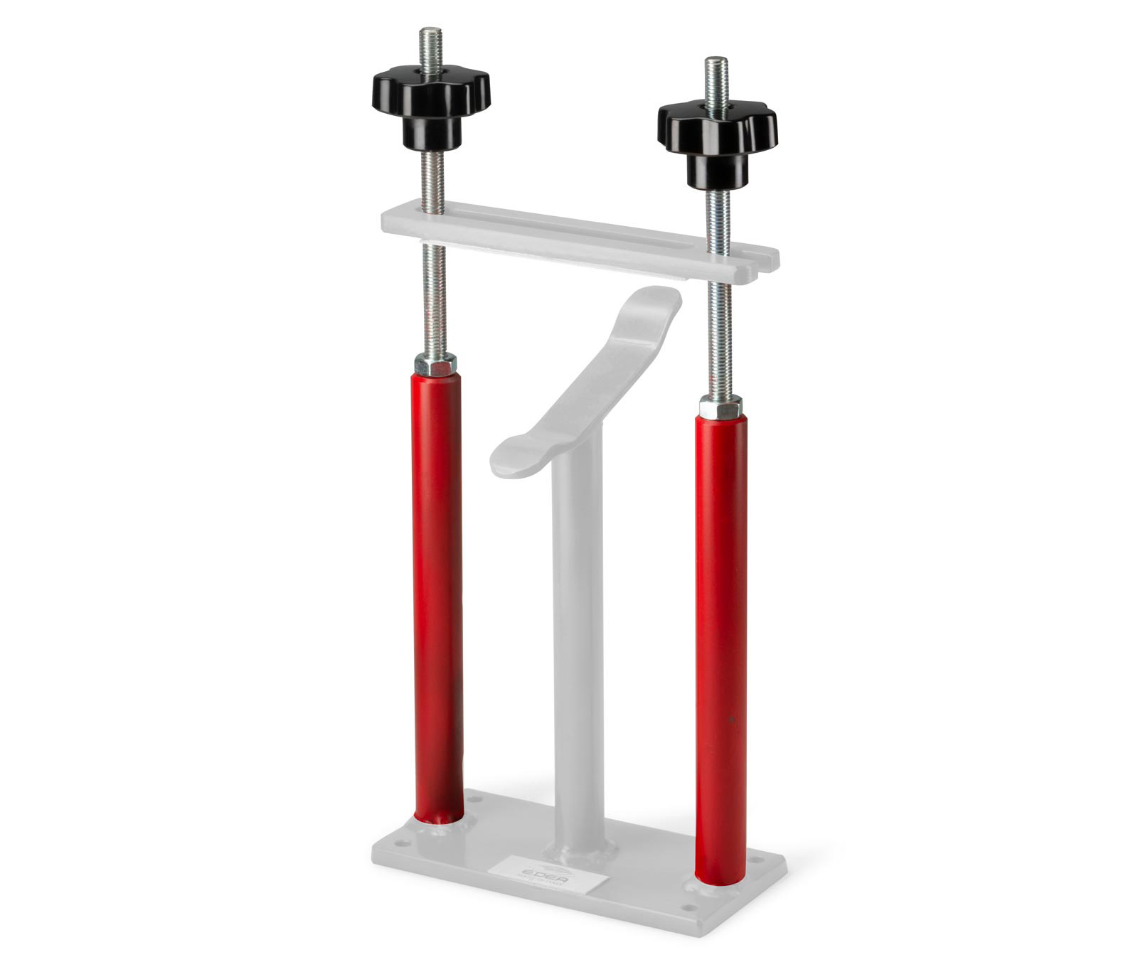 - Barras roscadas laterales y dos pomos para regular la altura de la barra de sujeción.